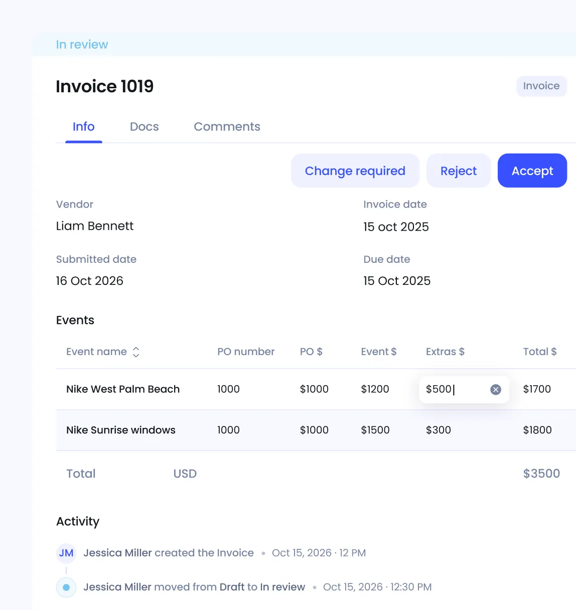 Invoices arrive before jobs are approved, and finance is left chasing clarity.