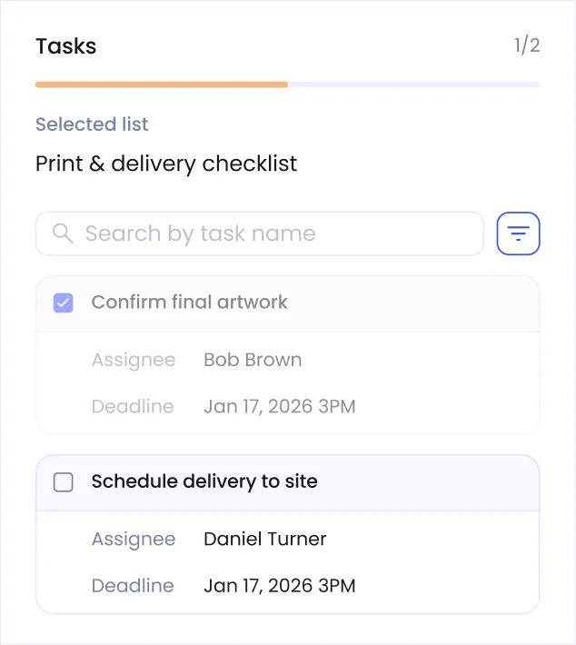 Build templates for common projects, complete with jobs, task lists, and the right people assigned.